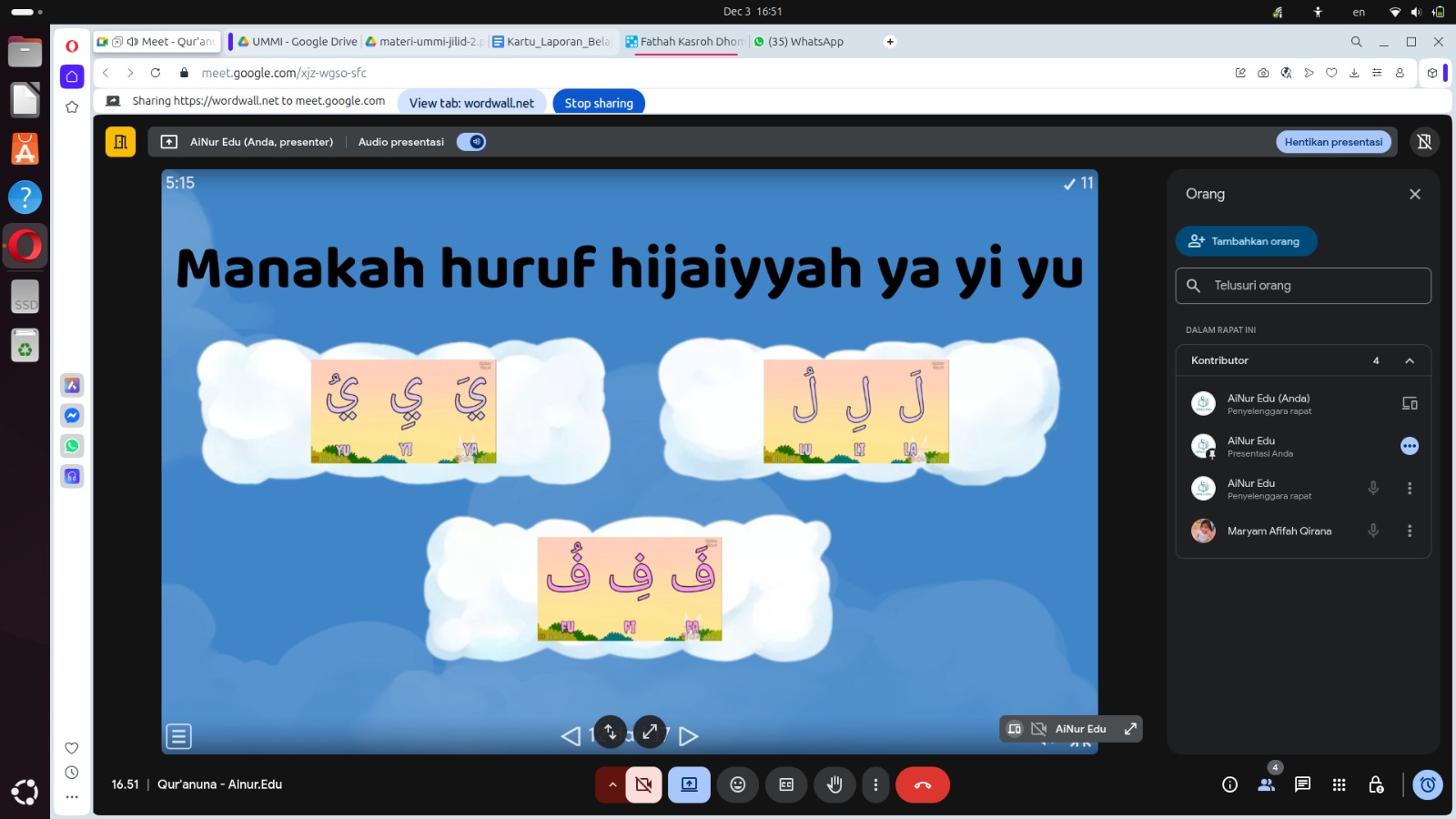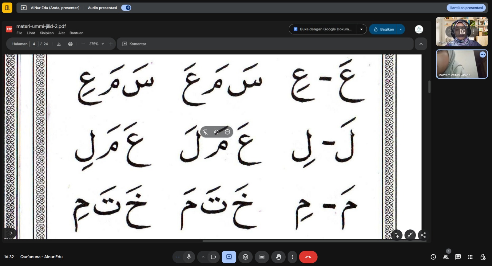 Dokumentasi kegiatan belajar, kelas online, dan aktivitas program Qur'anuna.